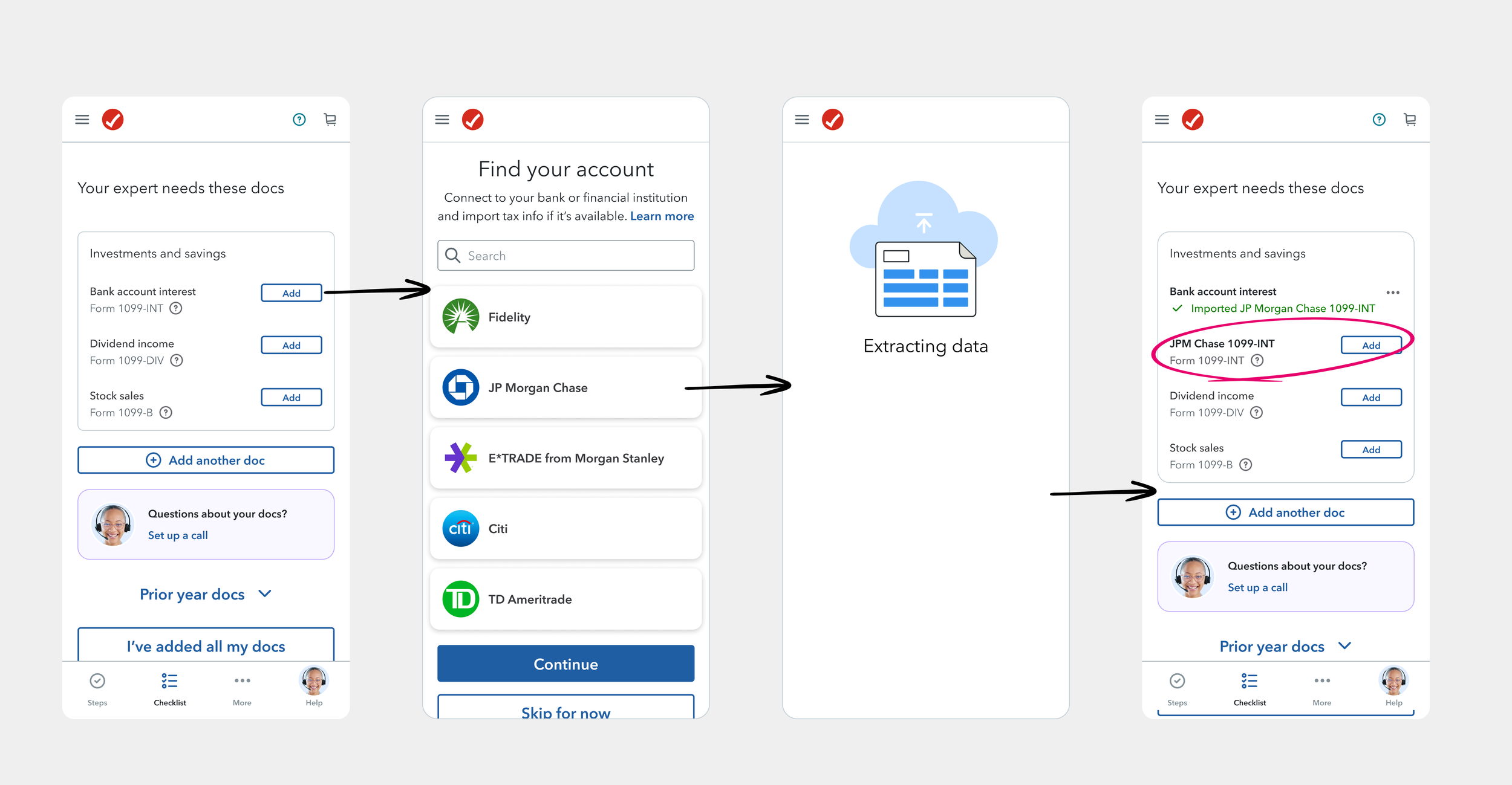 Opportunity to reduce expert hand off time in TurboTax Full Service — the customer is guided to import their bank interest forms. The data from the bank forms are extracted, but the expert now need to prompt and wait for customers to sign in to the bank again, or manually upload a physical copy of the tax forms to before signing off on the tax return.